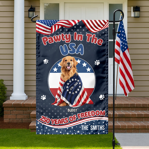 Personalized Pawty In The USA 250 Years Of Freedom Dog Garden Flag