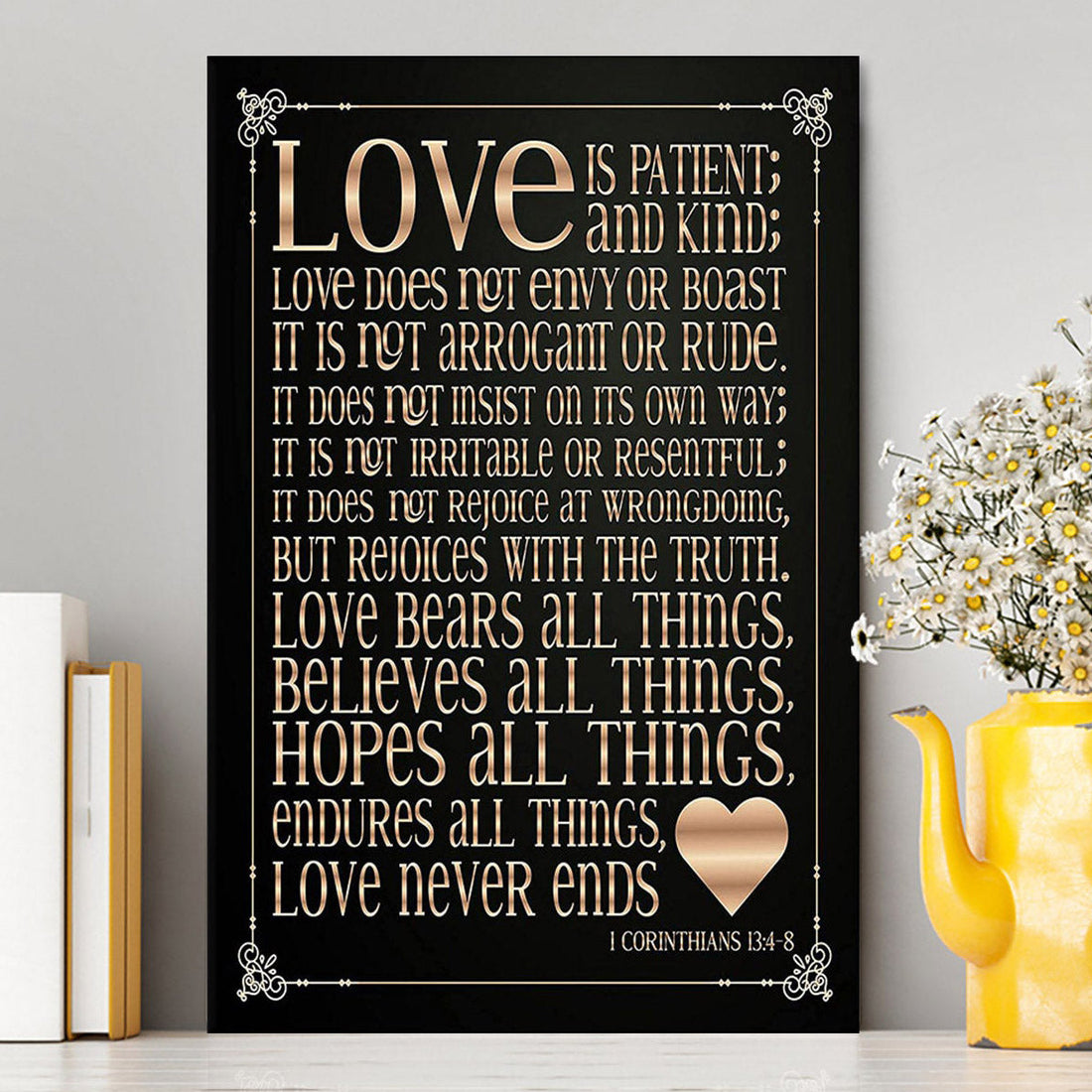 1 Corinthians 13 4 8 Love Is Patient & Kind Canvas Wall Decor - Christian Canvas Wall Art Decor