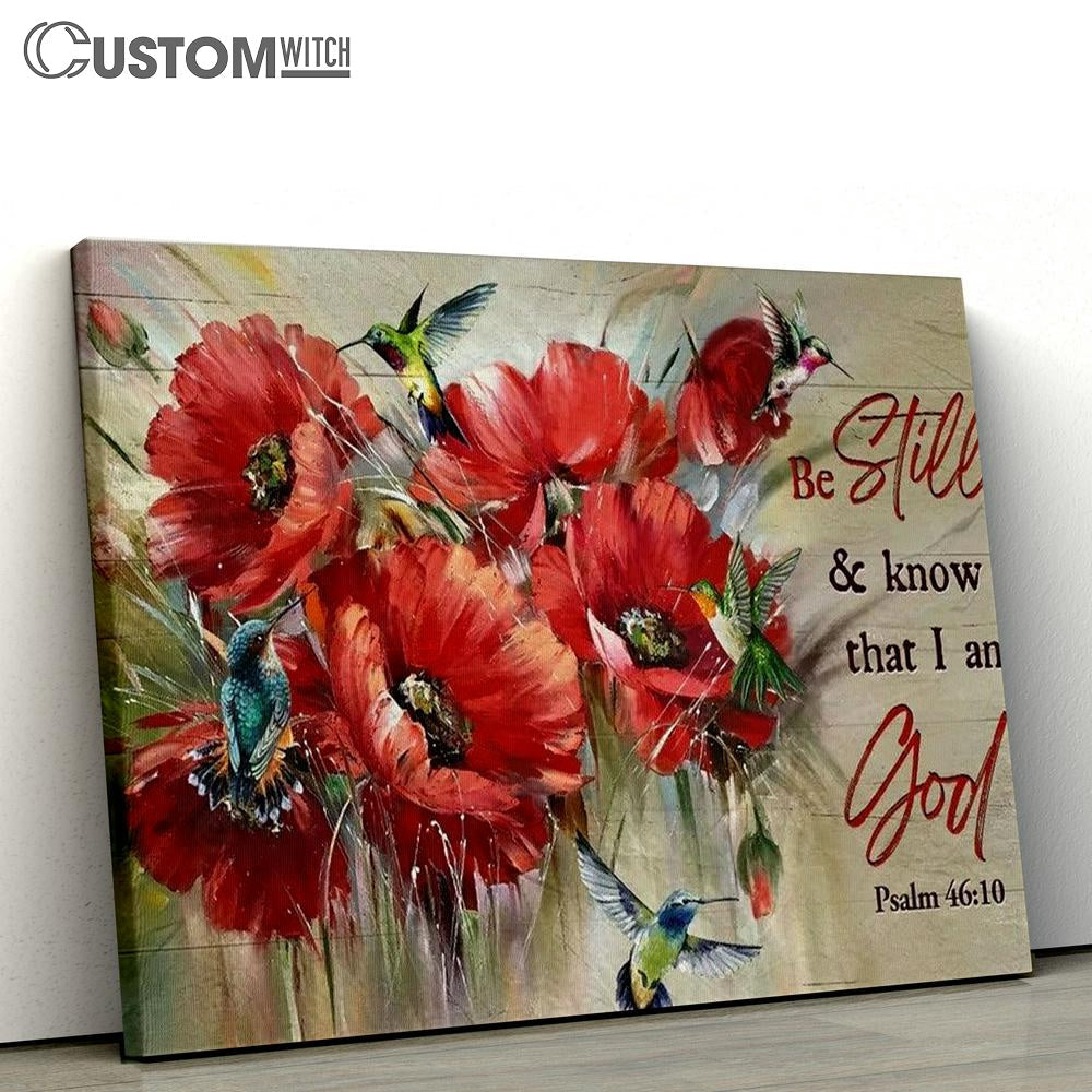 Brilliant Poppy Flower, Colorful Hummingbird, Be Still And Know That I Am God Canvas Poster