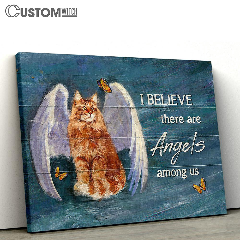 Brown Cat Angel Wings I Believe There Are Angels Among Us Canvas Wall Art - Bible Verse Canvas - Religious Prints
