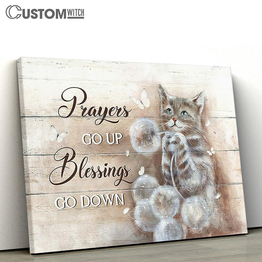 Brown Cat Dandelion Field Prayers Go Up Blessings Go Down Canvas Wall Art - Bible Verse Canvas - Religious Prints