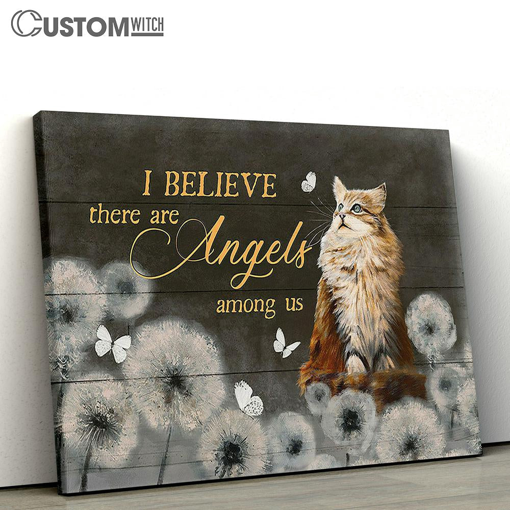 Brown Cat Dandelion I Believe There Are Angels Among Us Canvas Wall Art - Bible Verse Canvas - Religious Prints