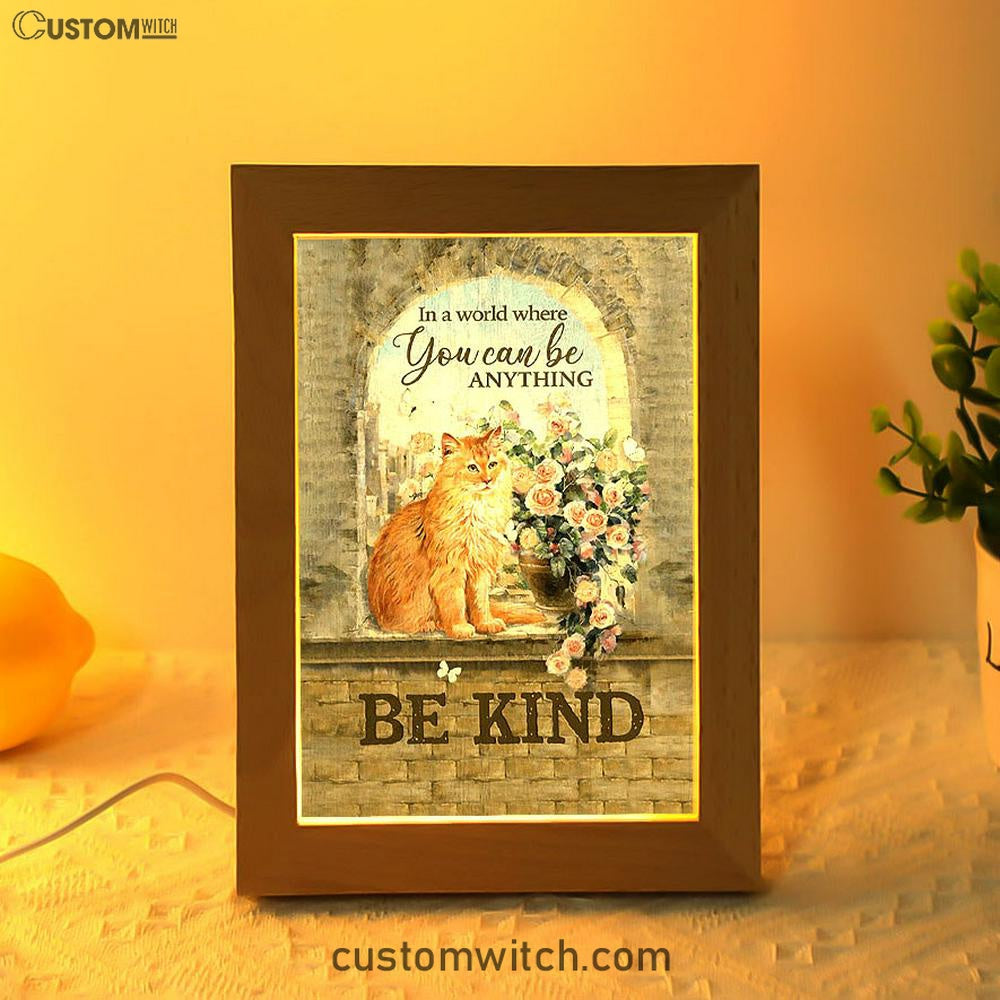 Brown Cat In A World Where You Can Be Anything Frame Lamp Art - Bible Verse Art - Christian Inspirational Decor