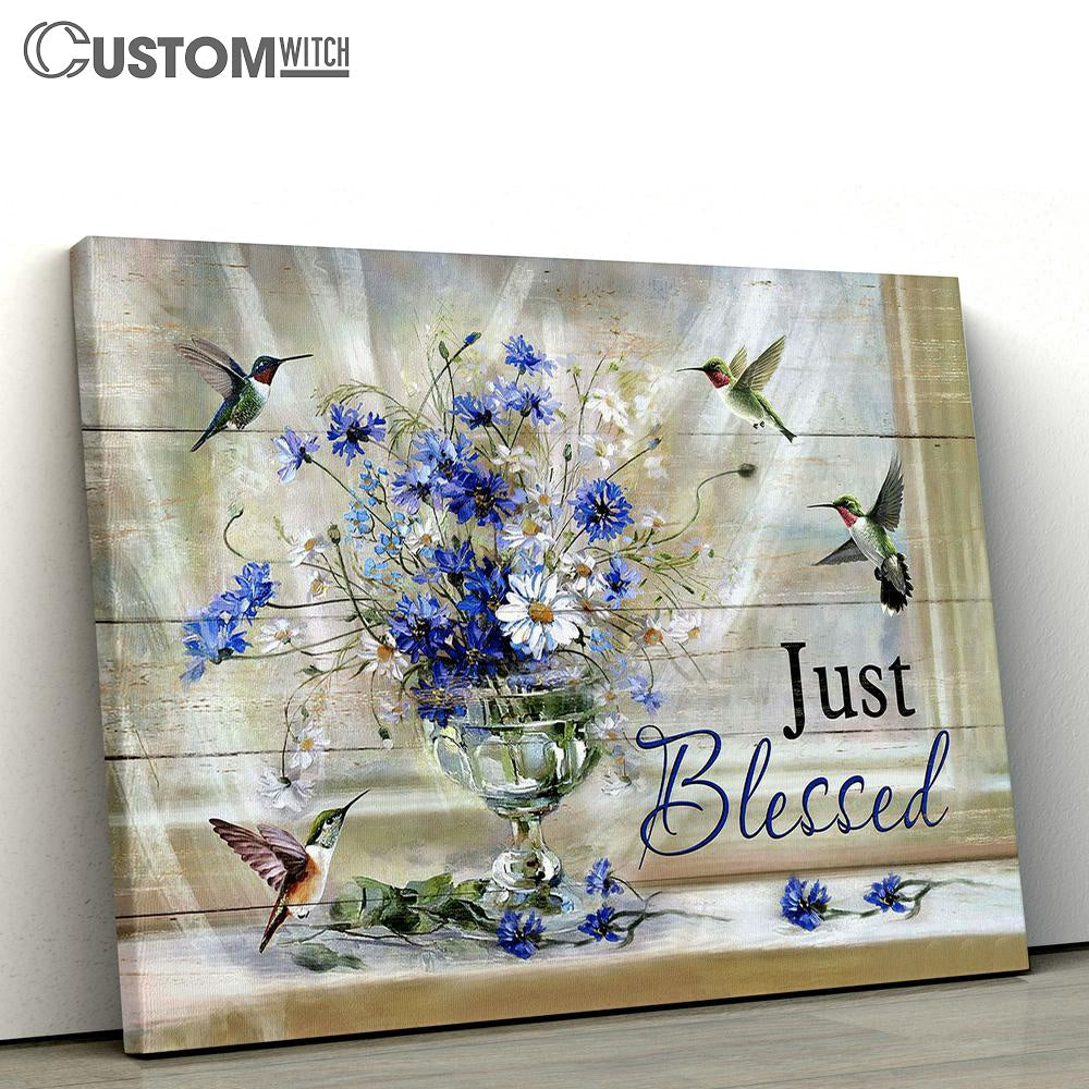 Just Blessed Daisy Flower Hummingbirds Canvas Wall Art - Bible Verse Canvas - Religious Prints