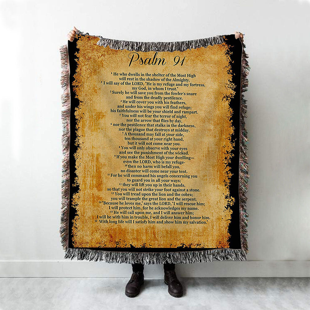 Psalm 91 - He Will Call Upon Me And I Will Answer Him Woven Blanket Wall Print - Christian Woven Throw Blanket Decor