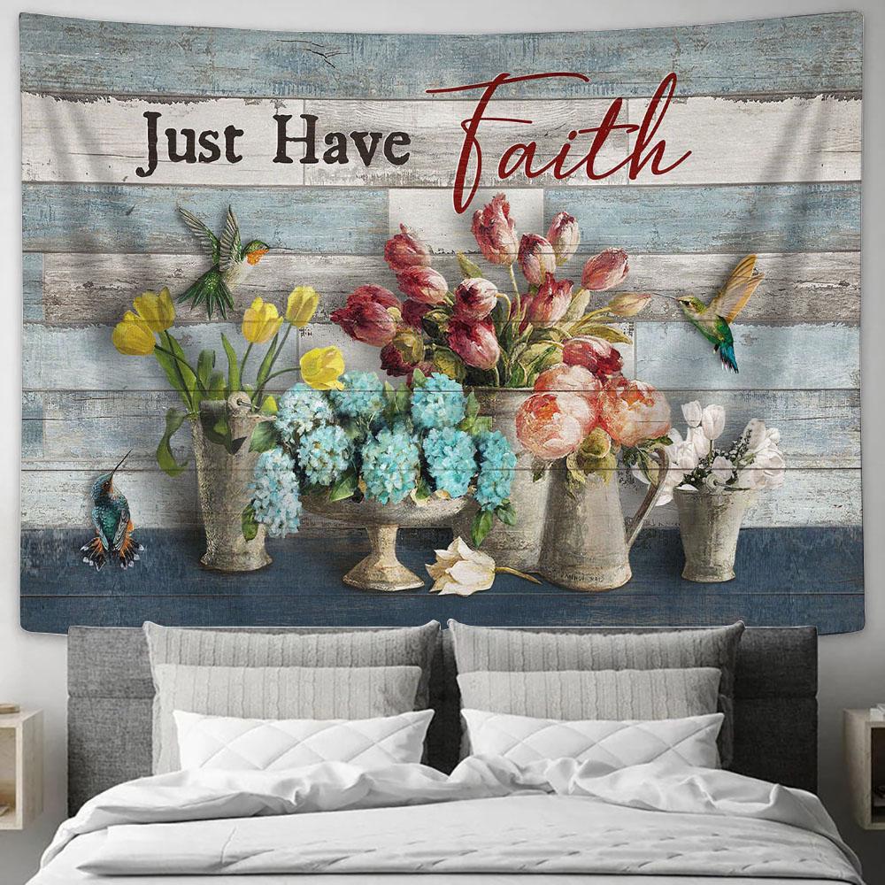 Just Have Faith Hummingbird Tapestry Art - Bible Verse Wall Art - Wall Decor Christian