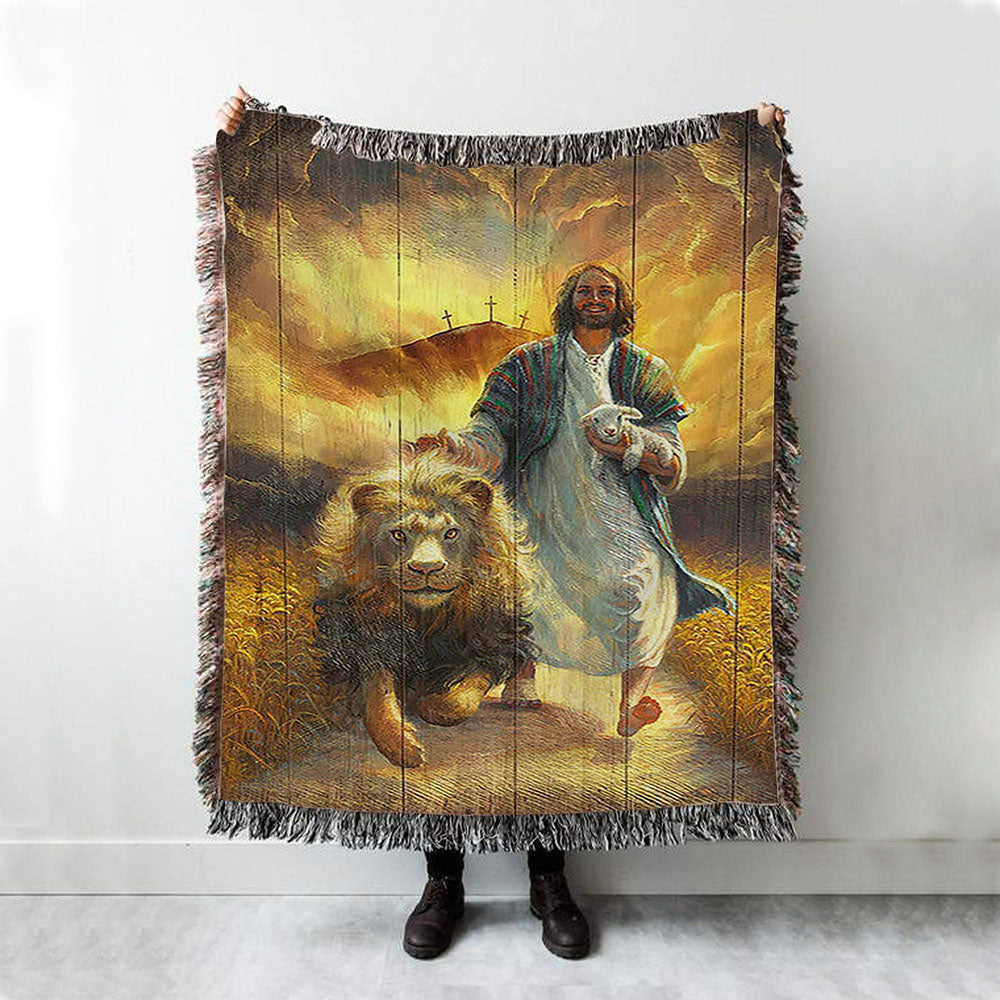 Jesus Walking With Lamb And Lion Woven Blanket Art - Christian Art - Bible Verse Throw Blanket - Religious Home Decor