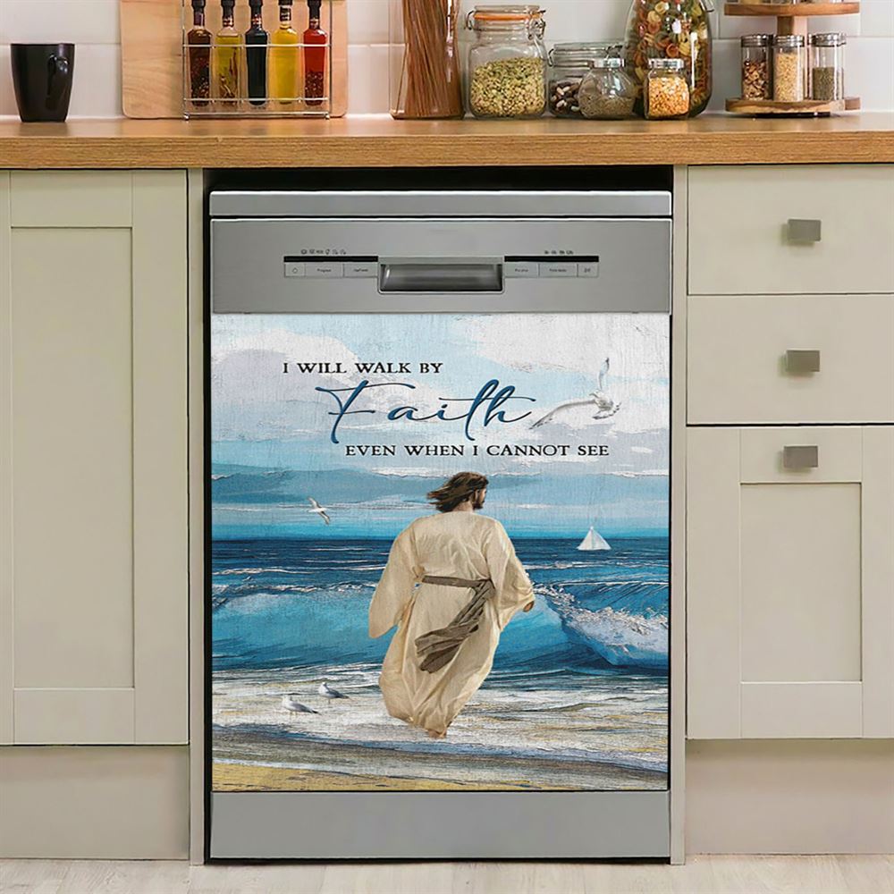 Jesus Walking With Lamb And Lion Dishwasher Cover, Christian Dishwasher Wrap, Bible Verse Kitchen Decoration