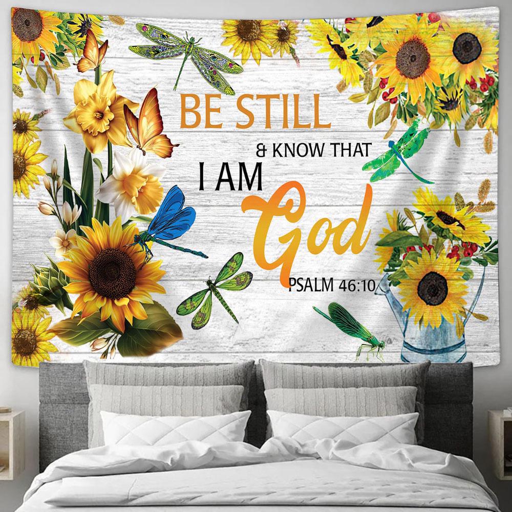 Sunflower Be Still Know That I Am God Psalm 46 10 Tapestry Wall Art - Bible Verse Wall Art - Christian Home Decor