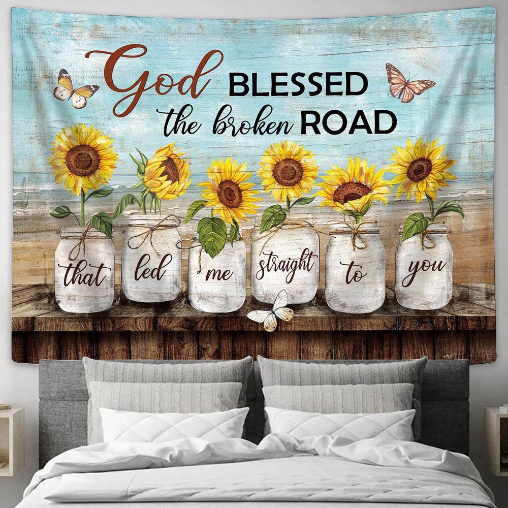 Sunflower God Blessed The Road That Led Me To You Tapestry Art - Bible Verse Wall Art - Wall Decor Christian