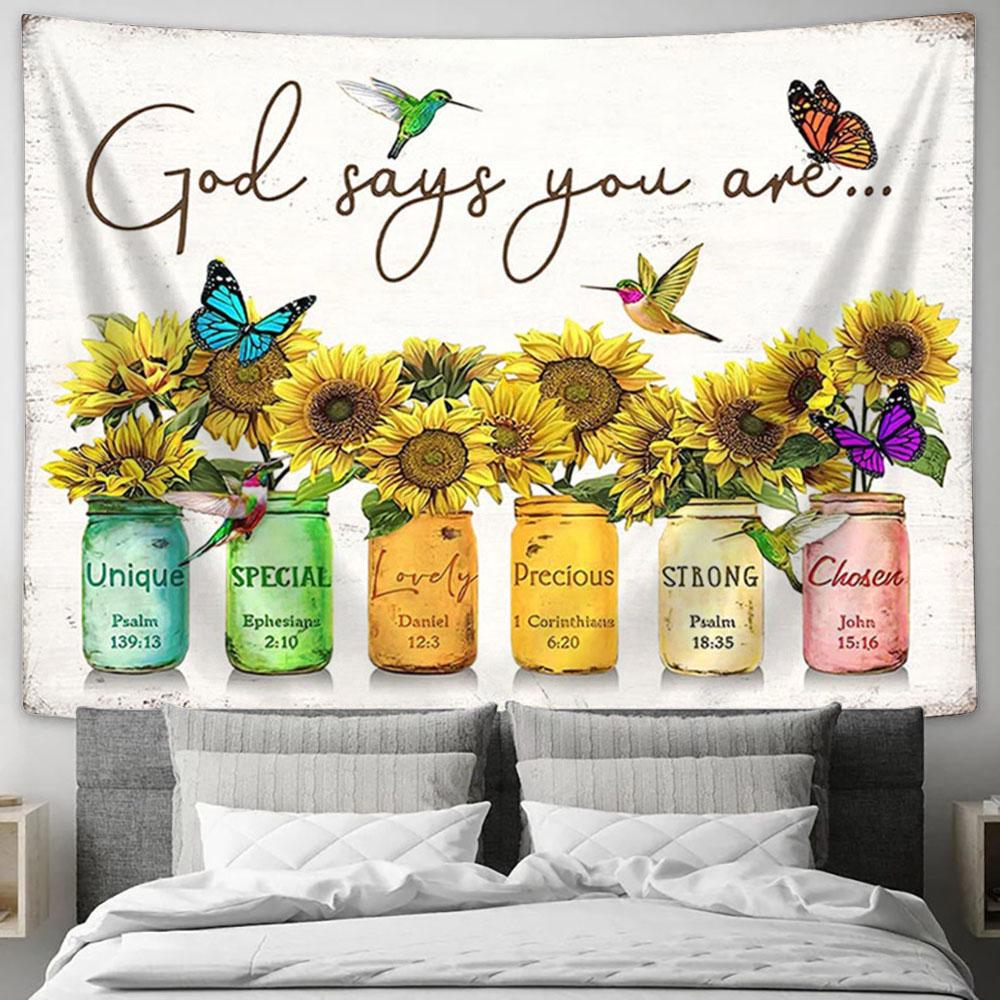 Sunflower God Says You Are Tapestry Art - Bible Verse Wall Art - Wall Decor Christian