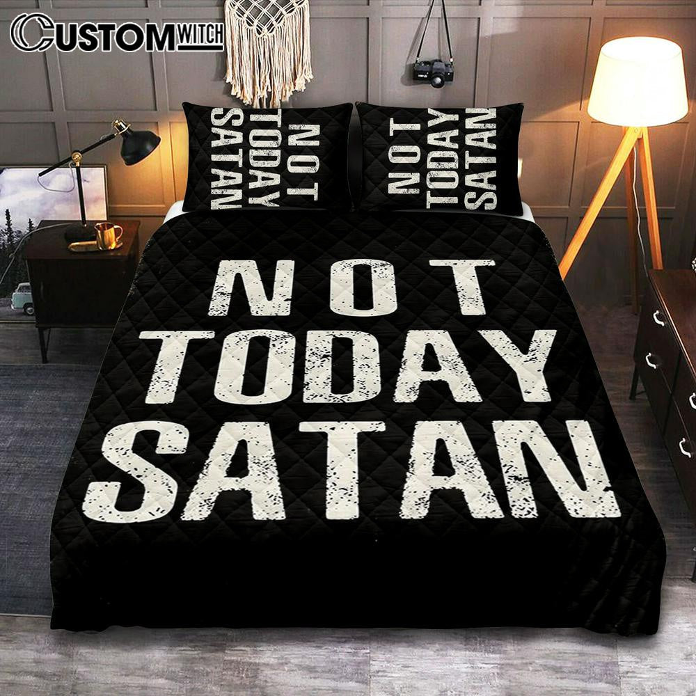 Not Today Satan Quilt Bedding Set Bedroom - Christian Quilt Bedding Set Bedroom Decor