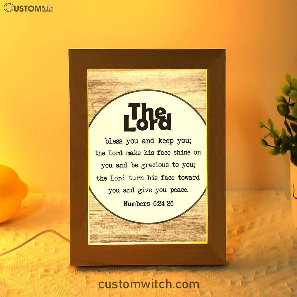 Numbers 624-26 The Lord Bless You And Keep You Rustic Farmhouse Frame Lamp Art - Christian Night Light - Religious Decor