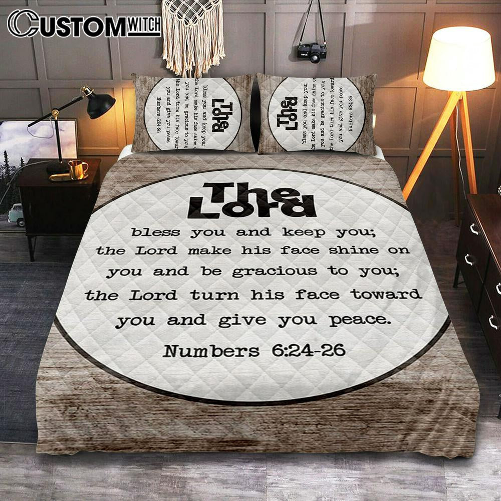 Numbers 624-26 The Lord Bless You And Keep You Rustic Farmhouse Quilt Bedding Set Bedroom - Christian Quilt Bedding Set Prints - Religious Cover Twin Bedding Decor
