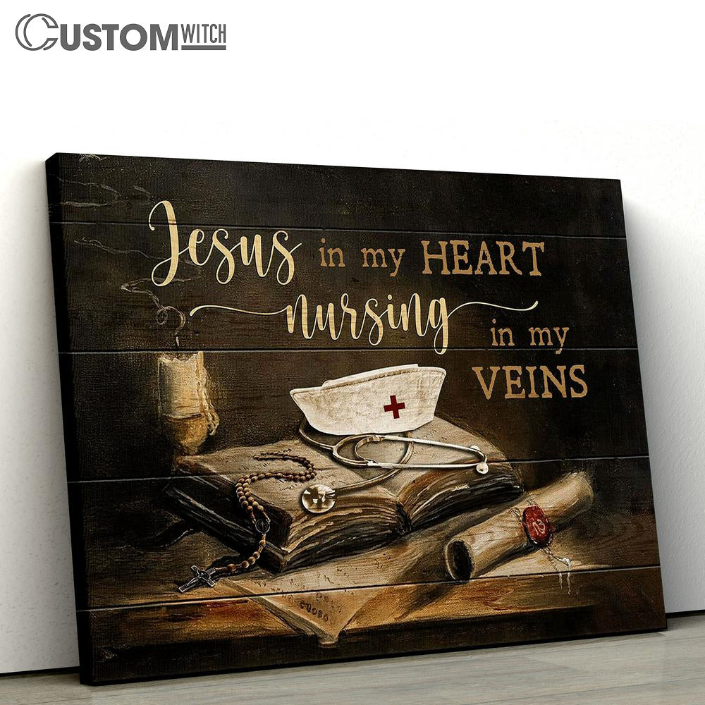 Nurse Cross Jesus In My Heart Nursing In My Veins Canvas Wall Art - Bible Verse Canvas - Religious Prints