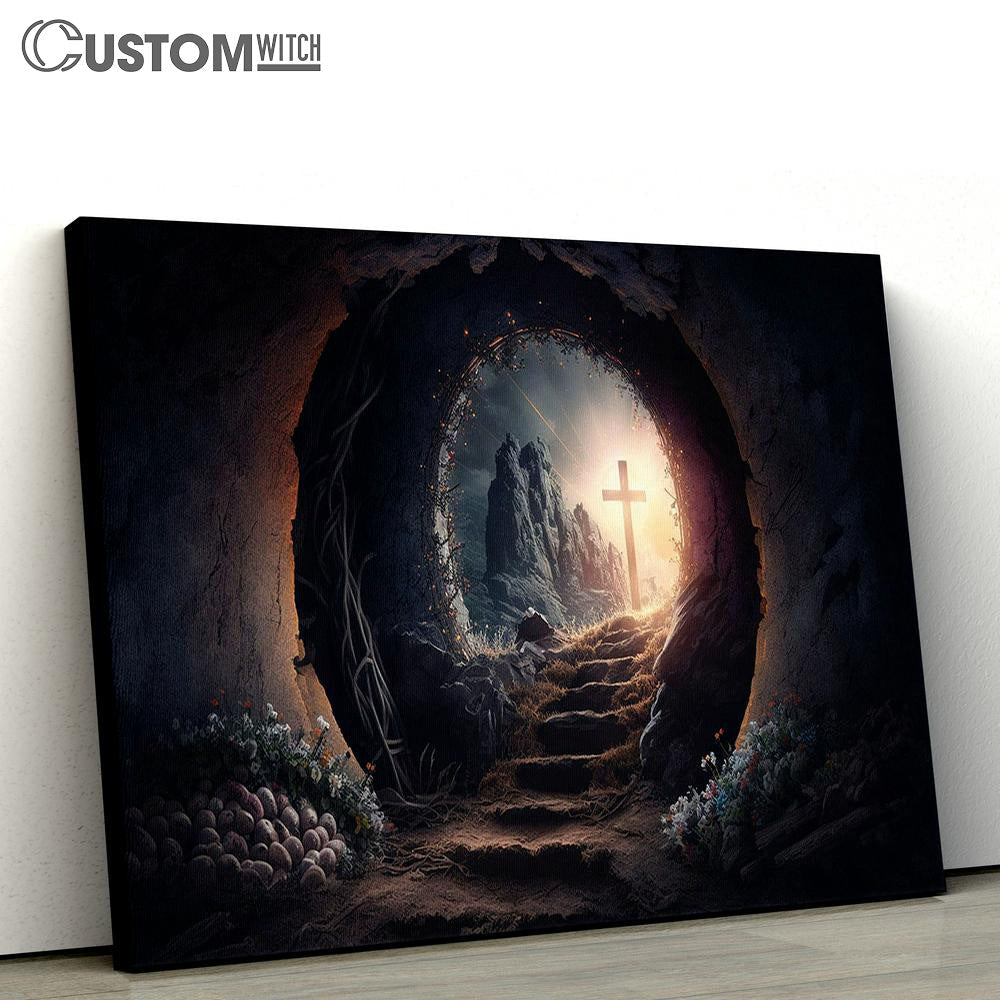 Resurrection Empty Tomb With Crucifix Dawn Canvas Pictures - Faith Art - Christian Canvas Wall Art Decor