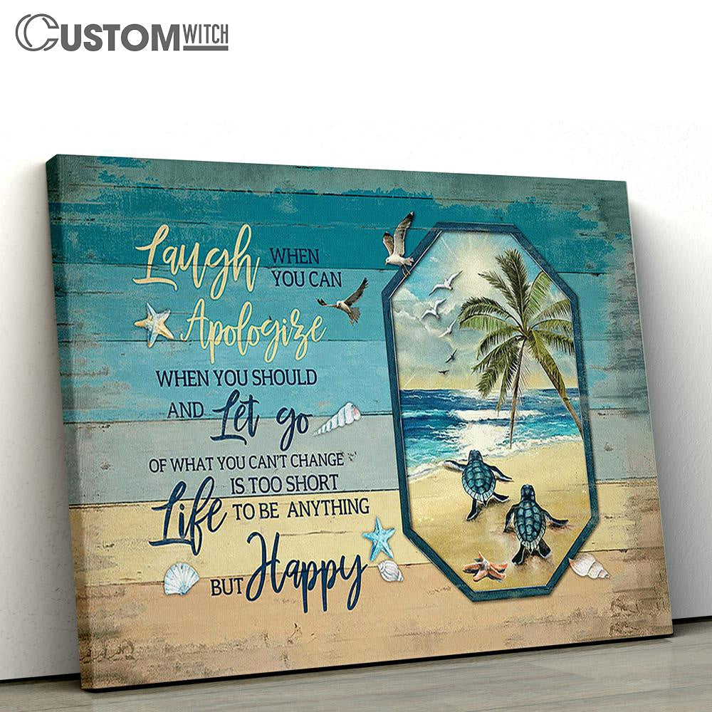 Sea Turtle Life Is Too Short To Be Anything But Happy Canvas Painting - Christian Wall Art - Gifts For Turtle Lovers
