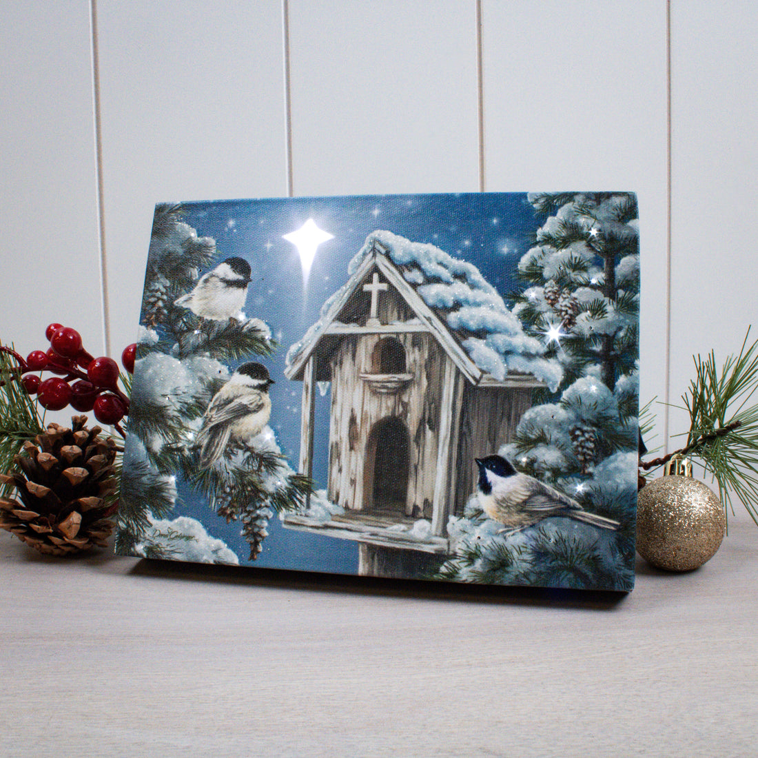 Artwork by Dona Gelsinger. 8" x 6" Easel Back Fiber Optic/LED Technology Auto Timer: On...