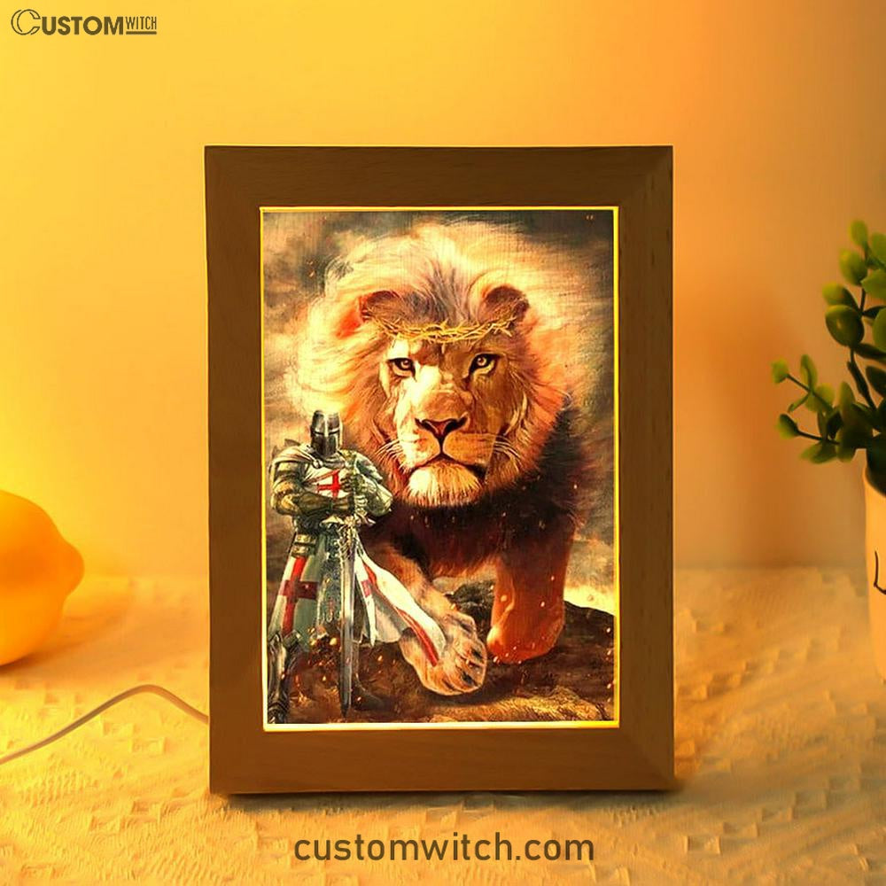 Warrior Of Christ And Lion Frame Lamp Art - Christian Home Decor - Religious Art