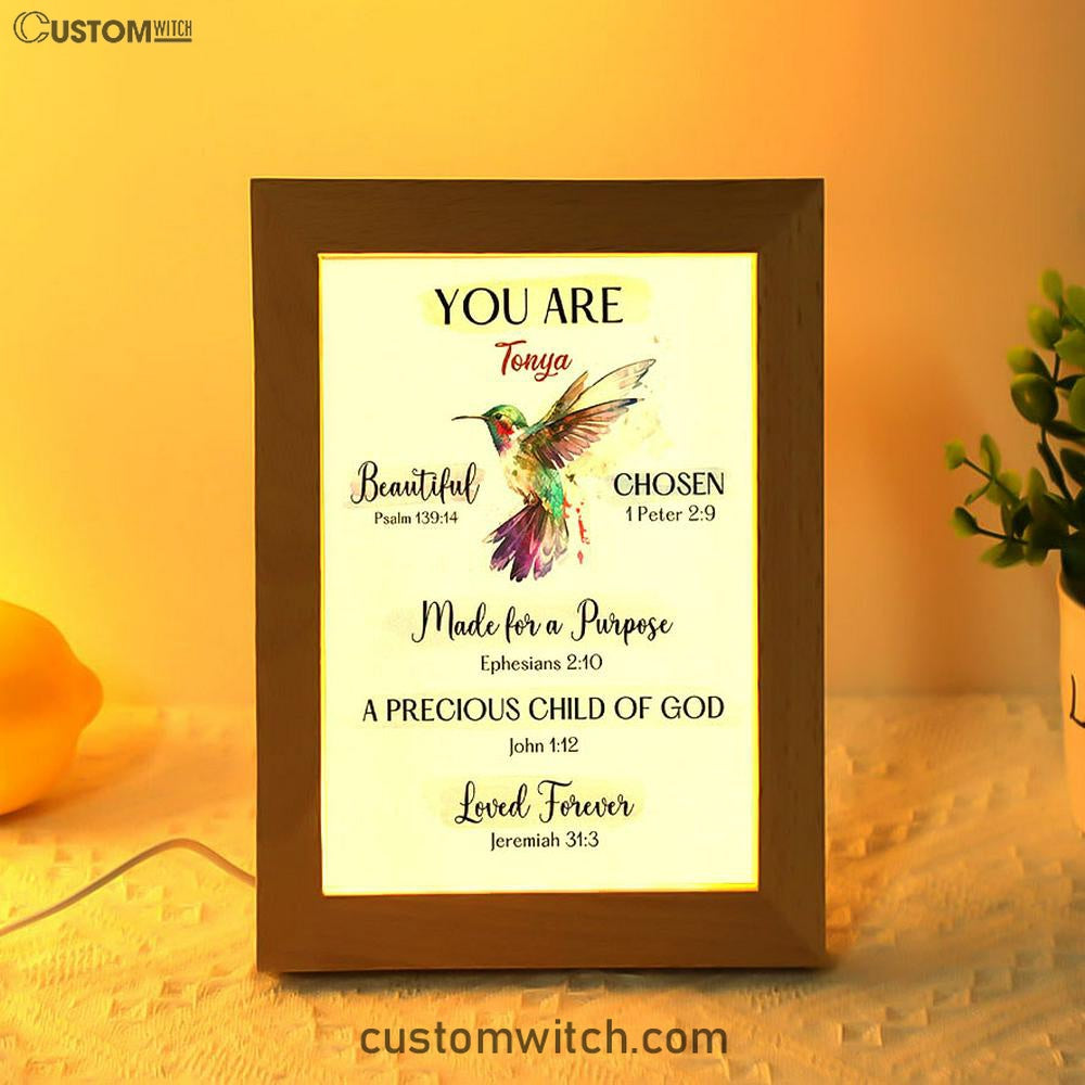 What God Says About You Personalized Frame Lamp Art - Hummingbird Frame Lamp Prints - Bible Verse Gift For Women Of God