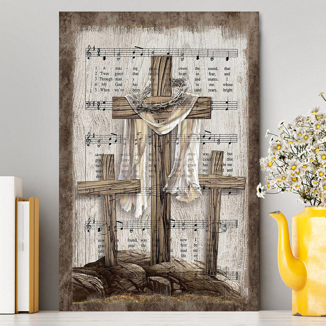 Wooden Cross Amazing Grace Lyrics Canvas Art - Christian Art - Bible Verse Wall Art - Religious Home Decor
