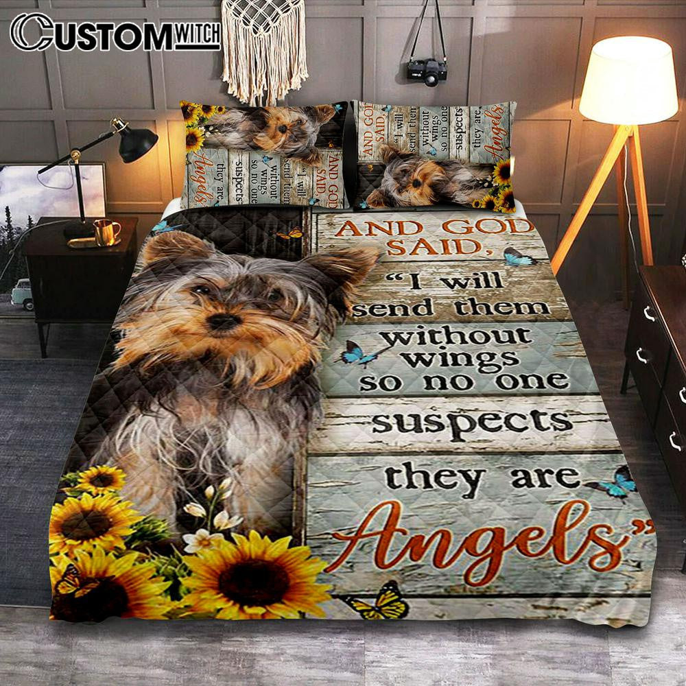And God Saidy Little Yorkshire Terrier Sunflower Butterfly Quilt Bedding Set Art - Bible Verse Bedroom