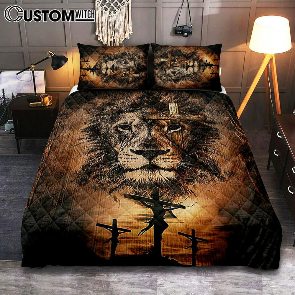 The Rugged Cross And Amazing Lion Quilt Bedding Set - Christian Bedroom - Religious Home Decor