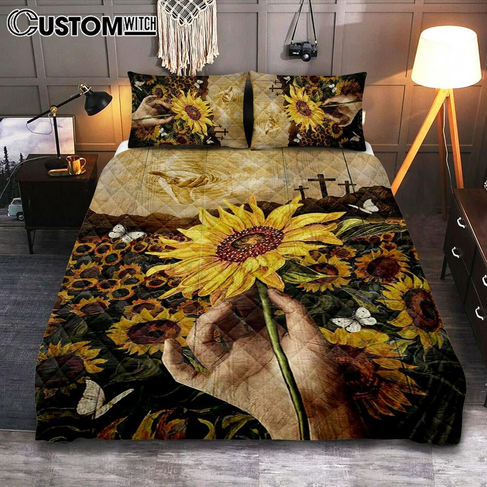 The Hand Of God Sunflower Field White Butterfly Quilt Bedding Set Art - Christian Art - Bible Verse Bedroom - Religious Home Decor