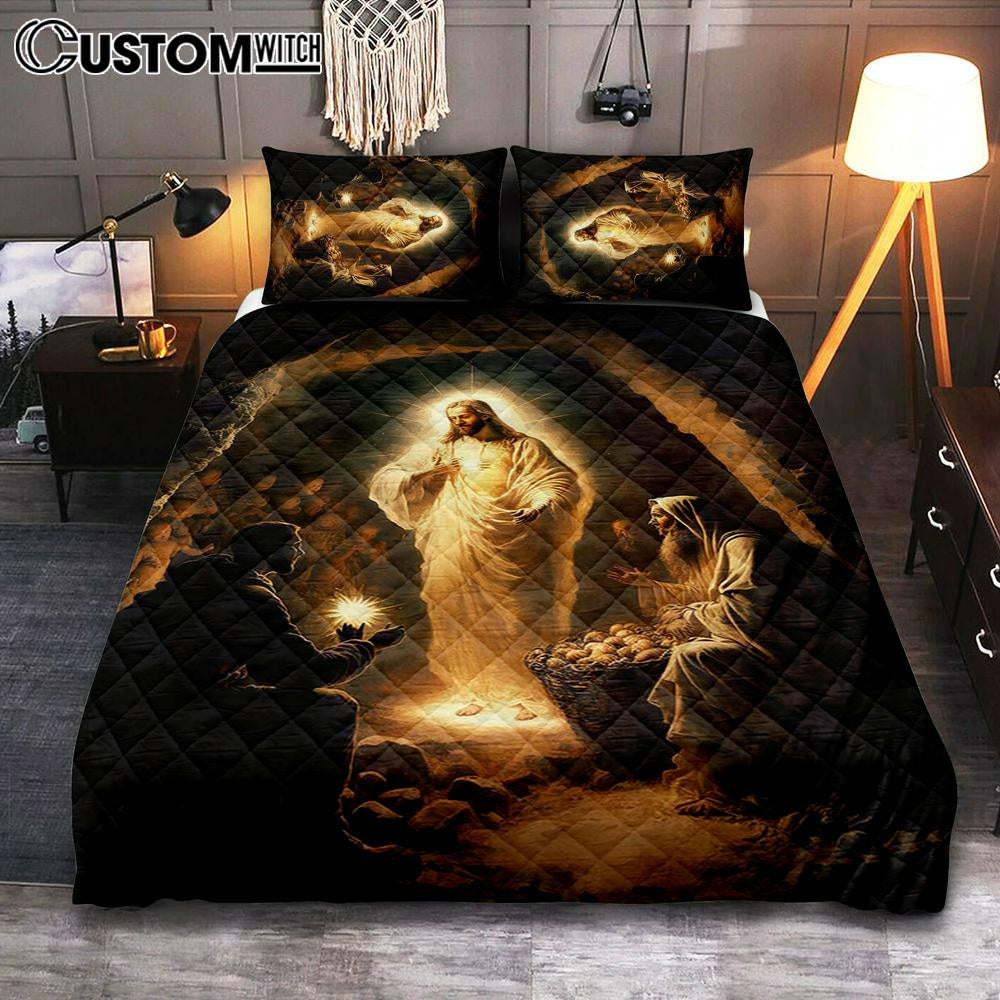 Jesus Spiritual Quilt Bedding Set Prints - Religious Quilt Bedding Set Art - Christian Cover Twin Bedding Decor
