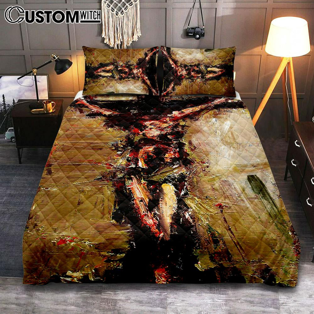 Jesus Died On Cross Quilt Bedding Set Prints - Jesus Christ Quilt Bedding Set Art - Christian Cover Twin Bedding Decor