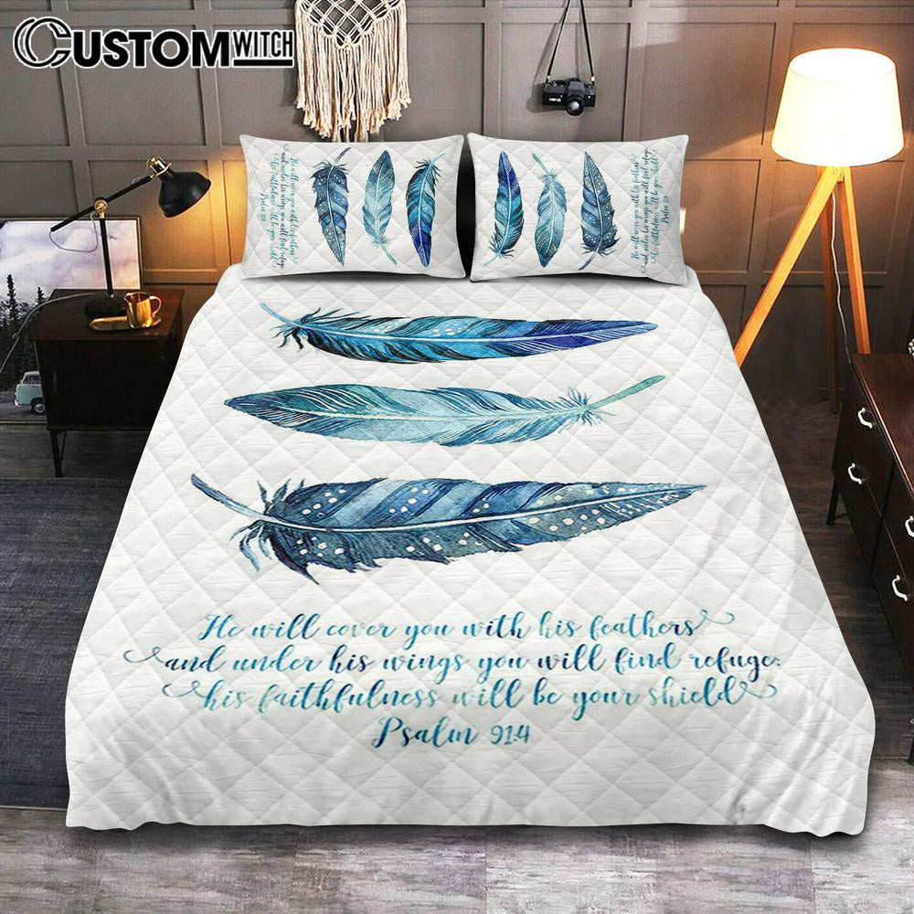 He Will Cover You With His Feathers Quilt Bedding Set Bedroom - Psalm 91 4 - Christian Quilt Bedding Set Bedroom Decor