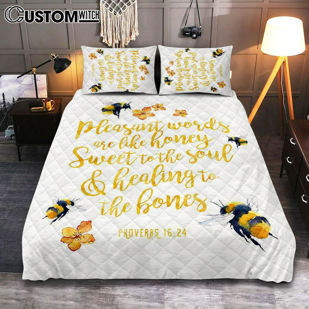 Honey Bee Quilt Bedding Set Cover Twin Bedding Decor - Pleasant Words Are Like Honey - Proverbs 16 24 - Christian Quilt Bedding Set Bedroom Decor