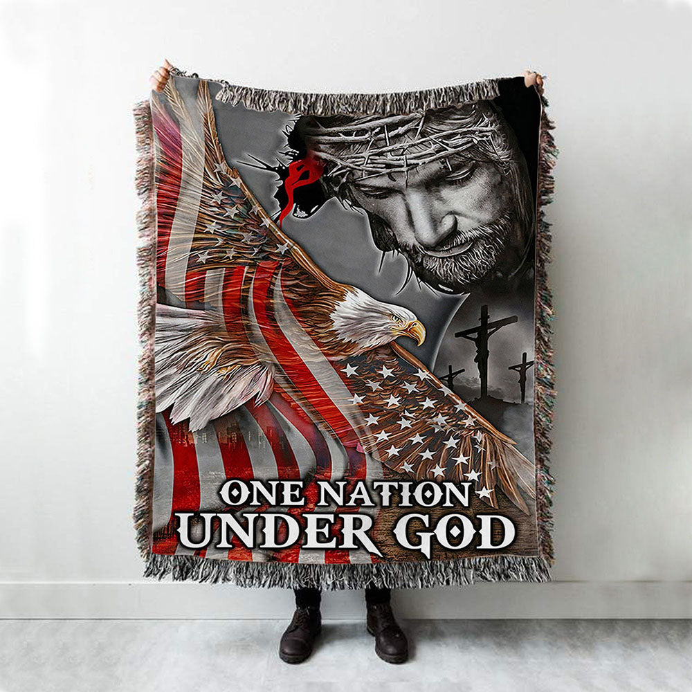 One Nation Under God Woven Throw Blanket - Christian Wall Woven Blanket - Religious Woven Blanket Prints