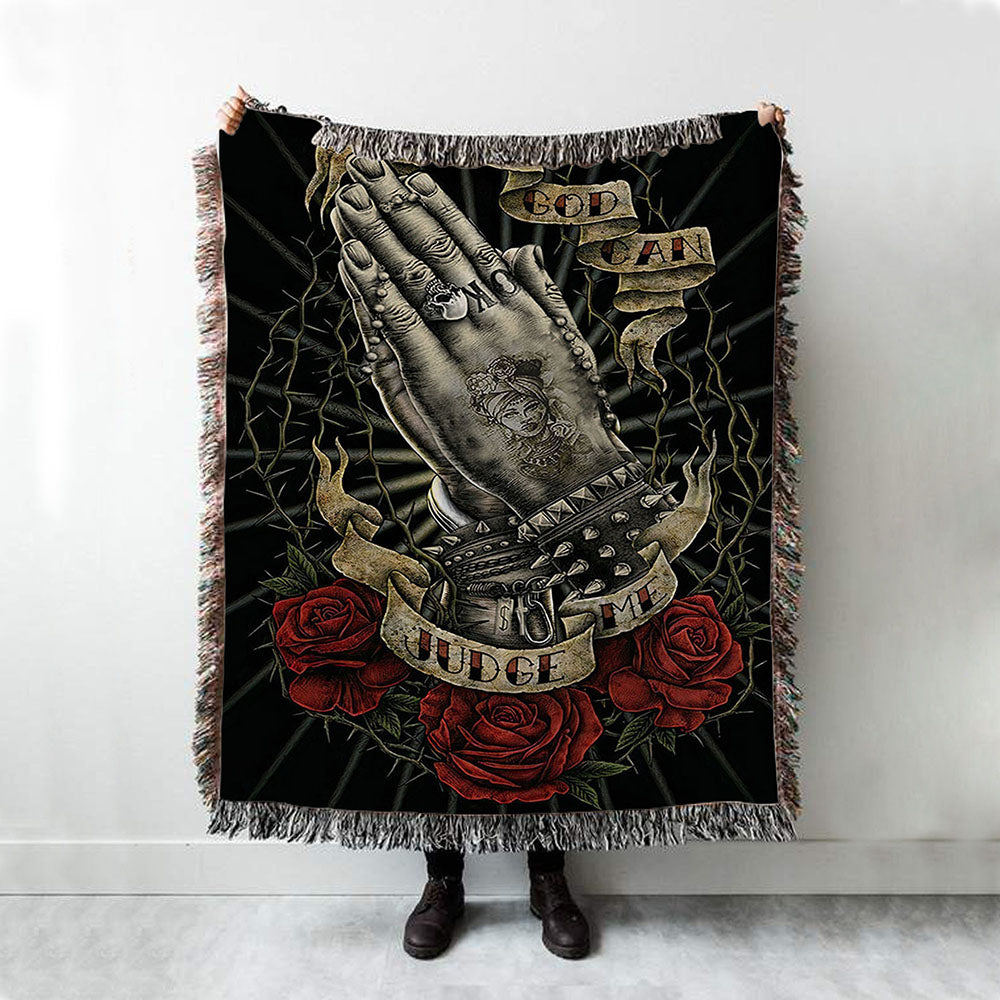 Only God Can Judge Me Hand Pray Woven Blanket Prints - Christian Boho Blanket - Bible Verse Woven Blanket Art