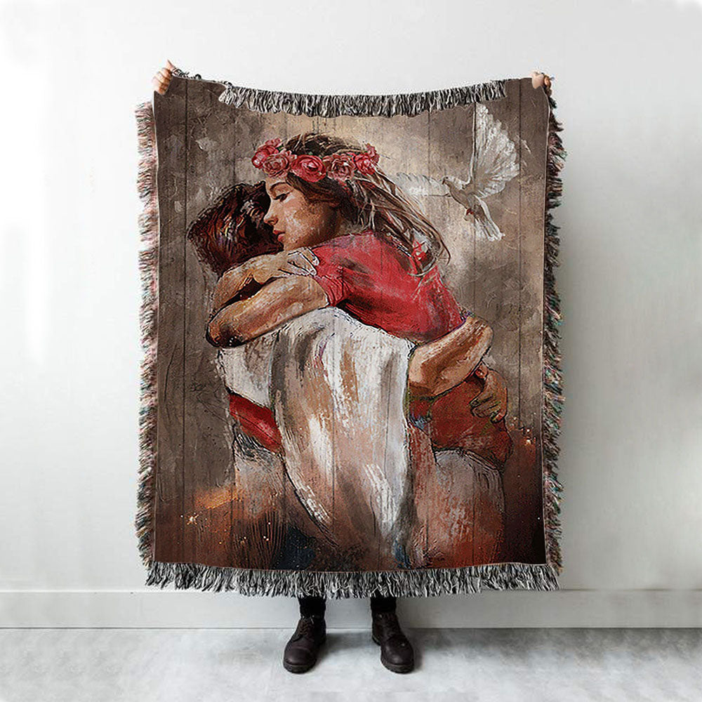 Jesus Dove A Warming Hug Woven Blanket - Christian Throw Blanket - Religious Home Decor
