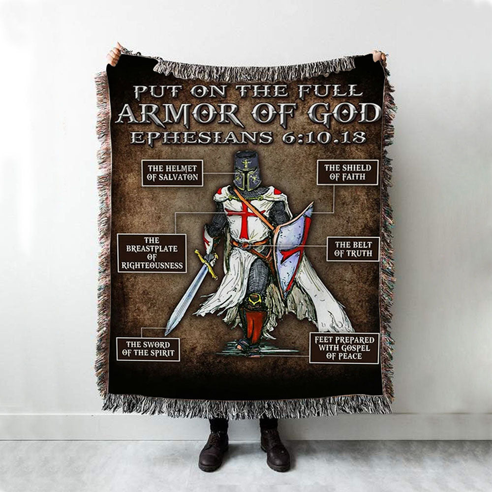 Warrior Of God Put On The Full Armor Of God Woven Throw Blanket - Christian Home Decor - Religious Art