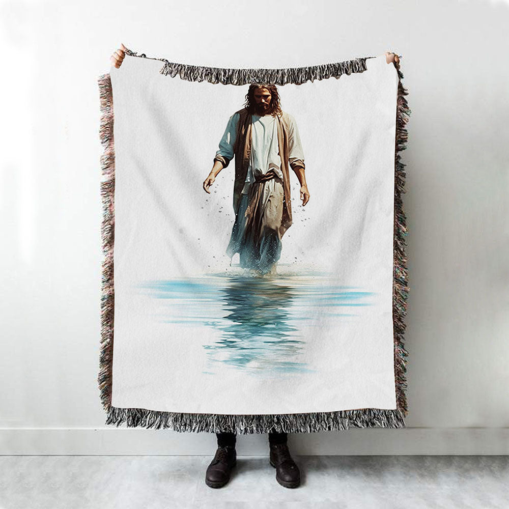 Water Color Jesus Walking On The Water Woven Blanket Prints - Jesus Woven Blanket Art - Christian Throw Blanket Decor