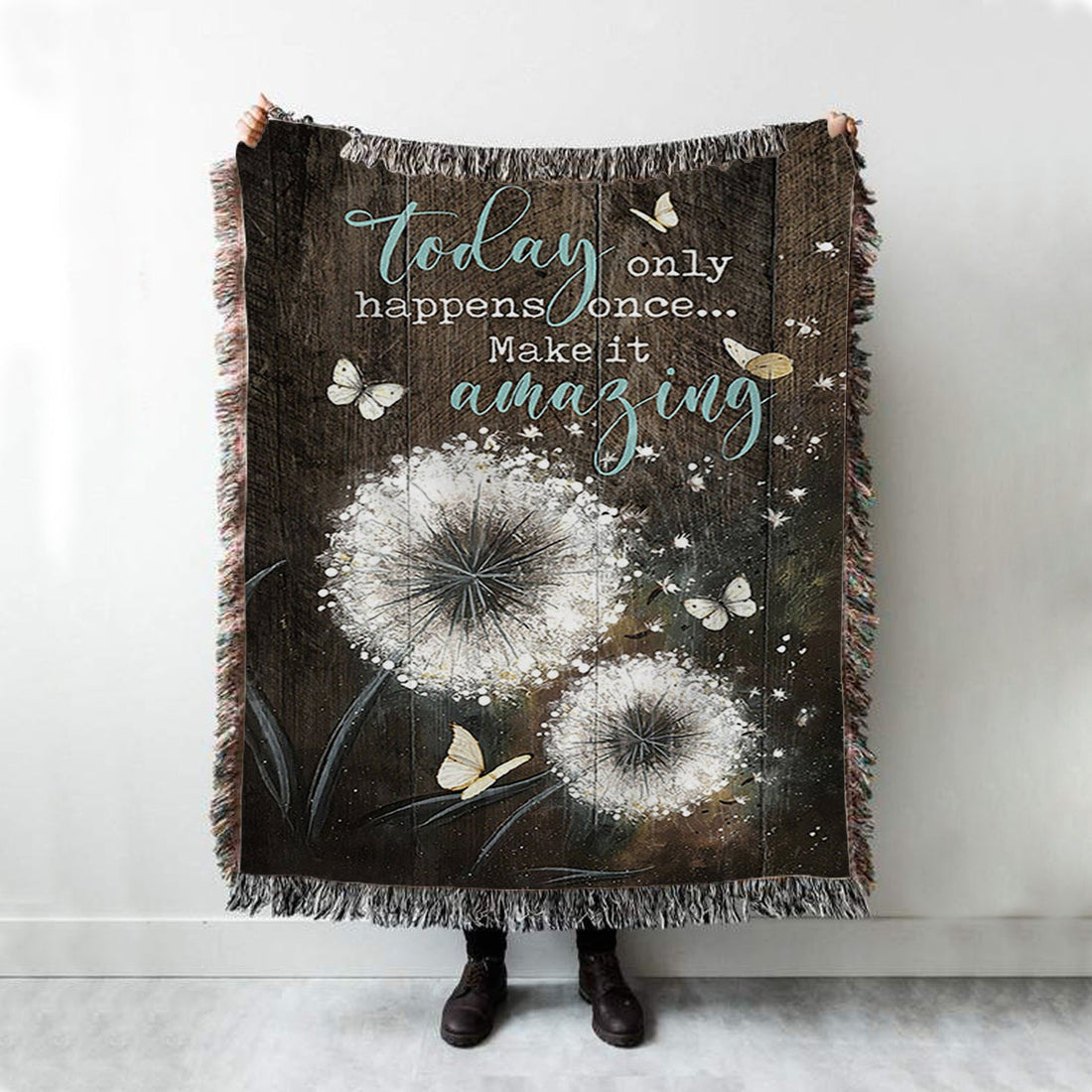 Today Only Happens Once Make It Amazing Dandelion White Butterfly Woven Blanket Print - Inspirational Woven Blanket Art - Christian Throw Blanket Home Decor