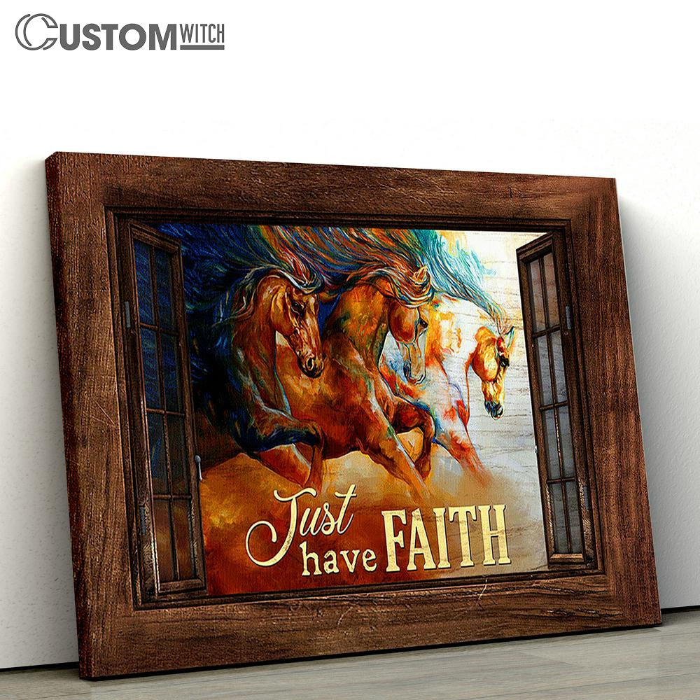 Running Horses Just Have Faith Wall Art Canvas - Christian Wall Decor - Gifts For Horse Lovers