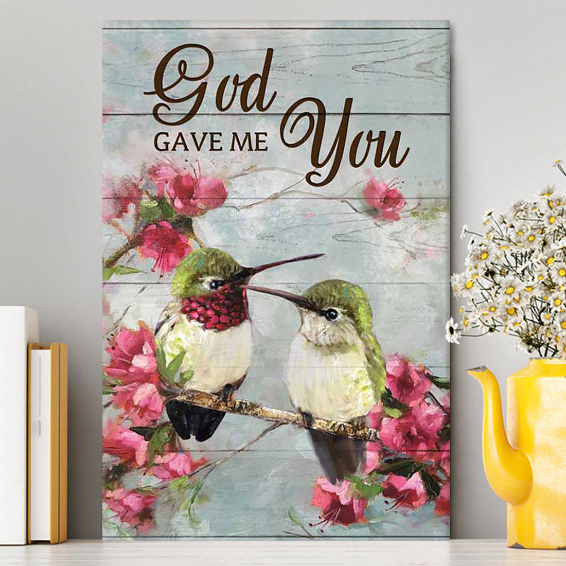 God Gave Me You Pink Flower Hummingbird Canvas Art - Bible Verse Wall Art - Christian Inspirational Wall Decor
