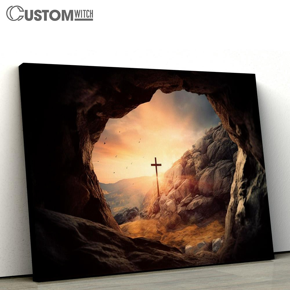 Cross Cave With Sunset Canvas Pictures - Faith Art - Christian Canvas Wall Art Decor