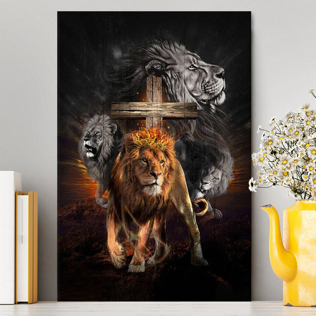 Lion Of Judah Wooden Cross Jesus The Lord Canvas - Lion Canvas Print - Christian Wall Art - Religious Home Decor