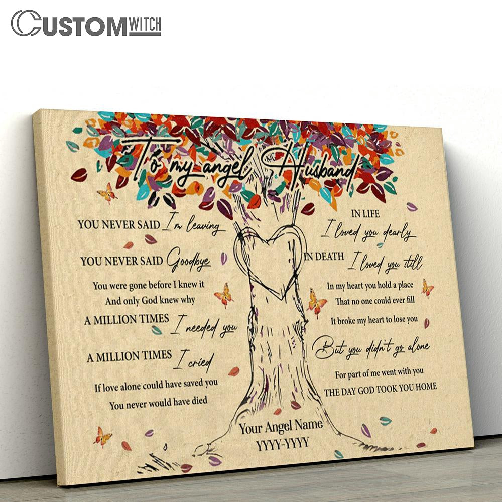 To My Angel Husband Colorful Tree Heart Butterfly Leaf Personalization Large Canvas - Christian Canvas Prints - Religious Canvas Art