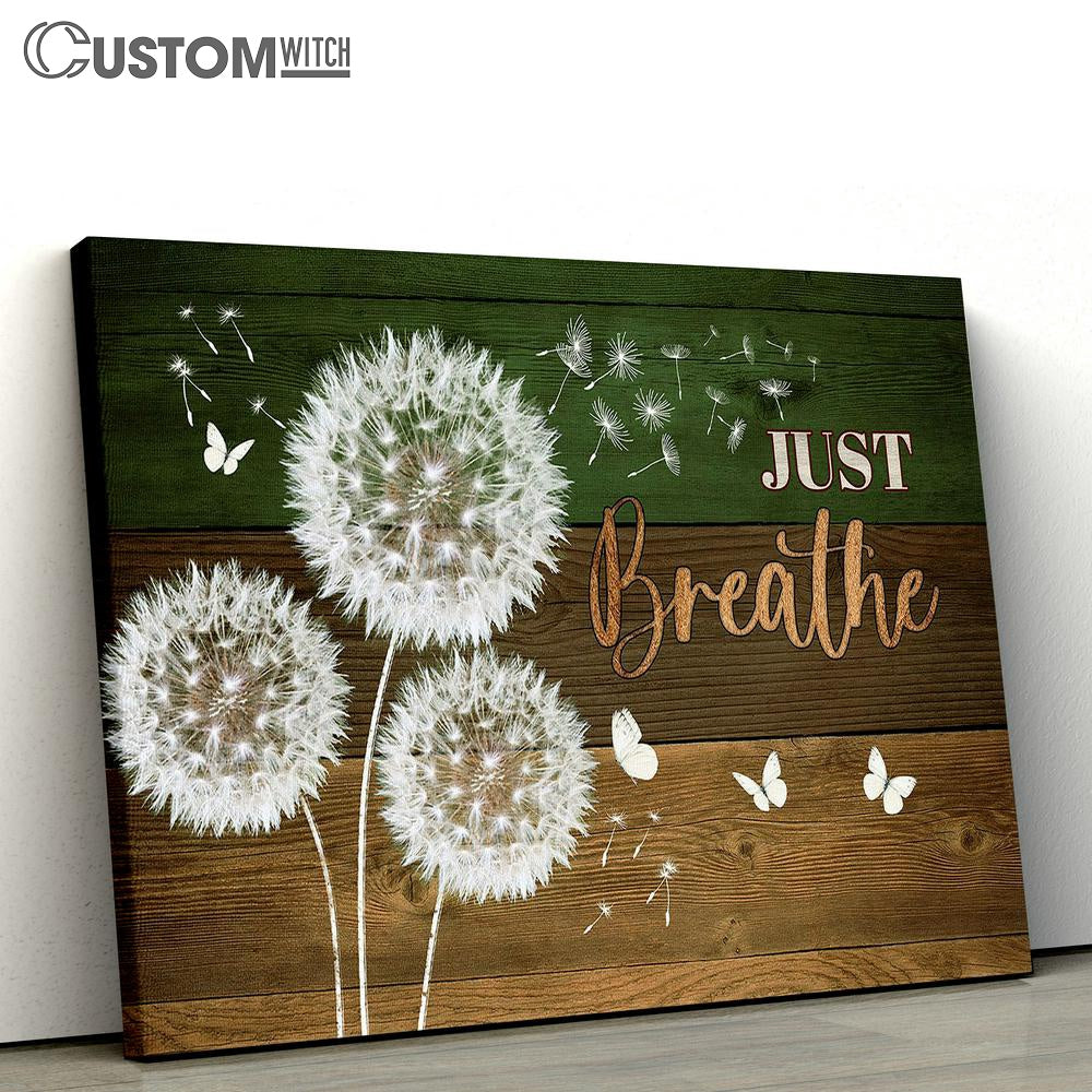 Just breathe Dandelion White butterfly Canvas Wall Art - Bible Verse Canvas - Religious Prints