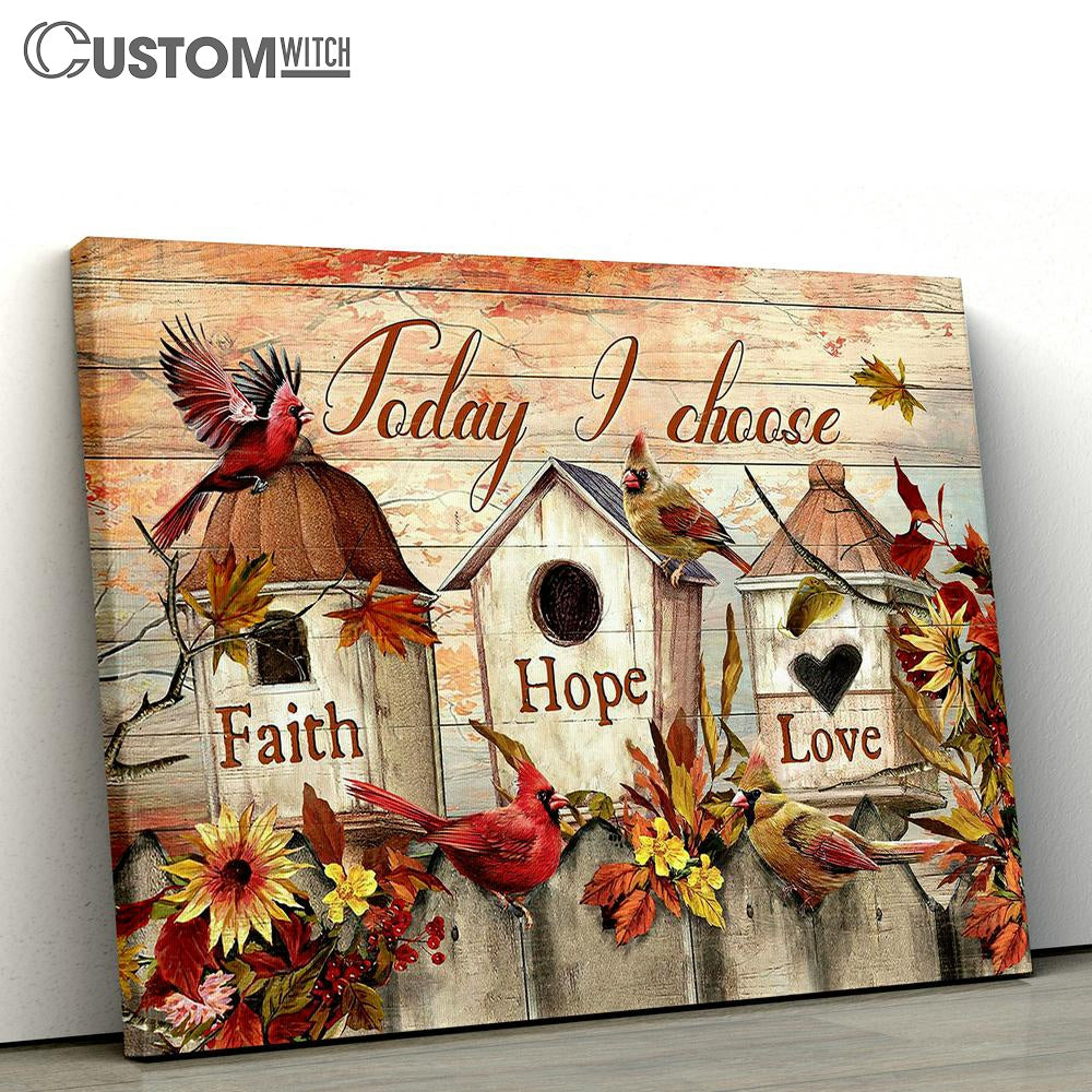 Cardinal Flower Bird House Today I Choose Faith Hope Love Canvas Wall Art - Bible Verse Canvas - Religious Prints