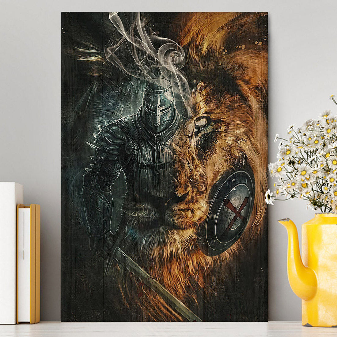 Awesome Warrior And Lion Canvas Wall Art - Christian Home Decor - Religious Art