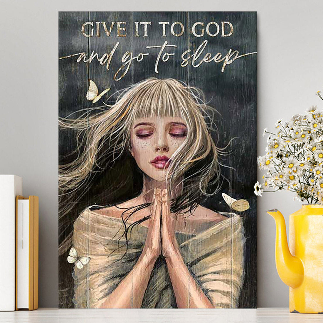 Give It To God And Go To Sleep Praying Girl Canvas Art - Bible Verse Wall Art - Christian Inspirational Wall Decor