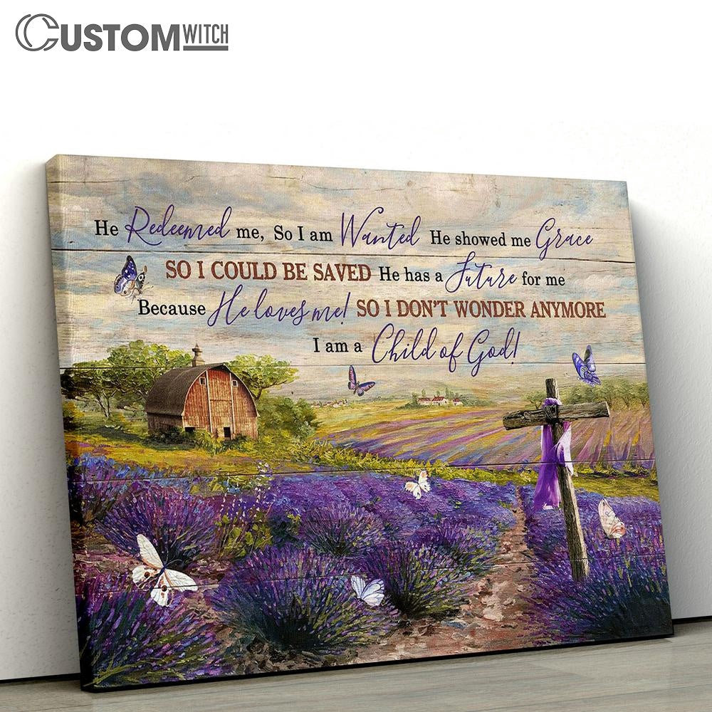Lavender Flower Field I Am A Child Of God Canvas Art - Christian Wall Art Decor - Bible Verse Canvas