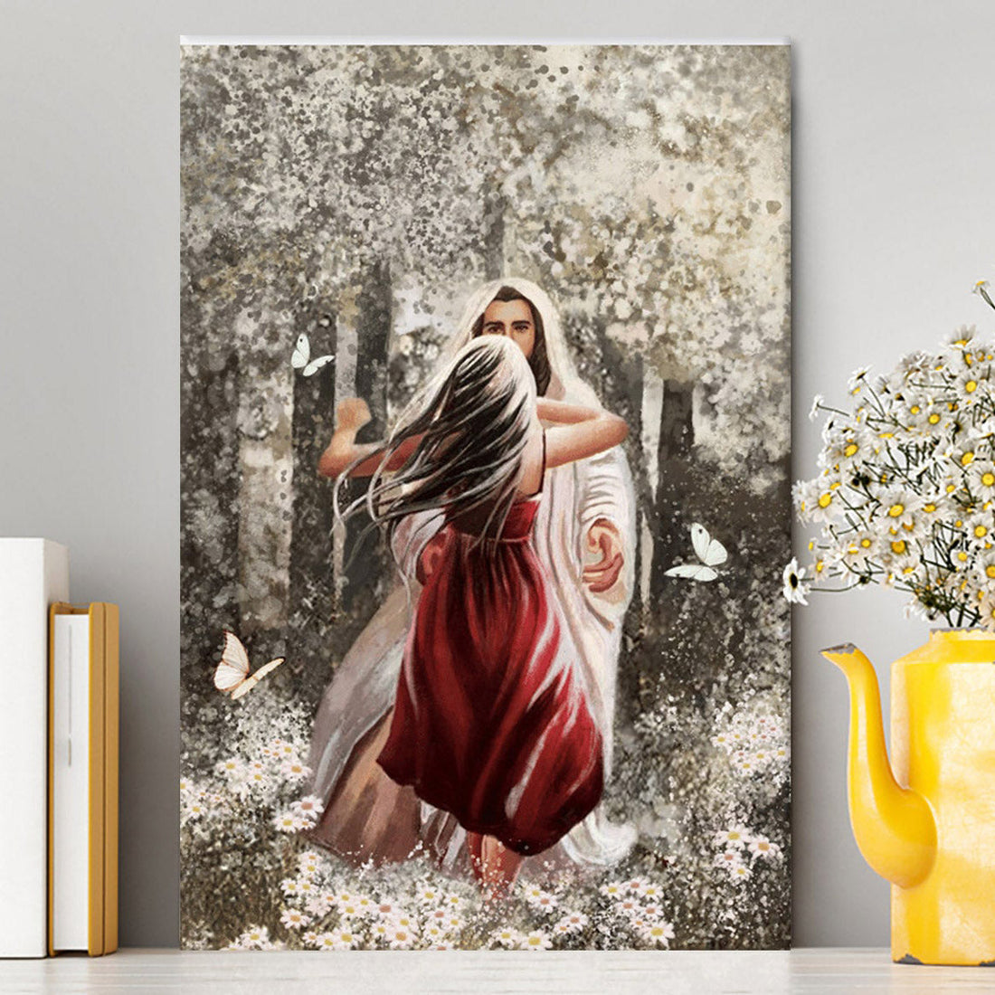 Jesus Hugging Girl Canvas Prints - Jesus Christ Canvas Art - Christian Wall Decor