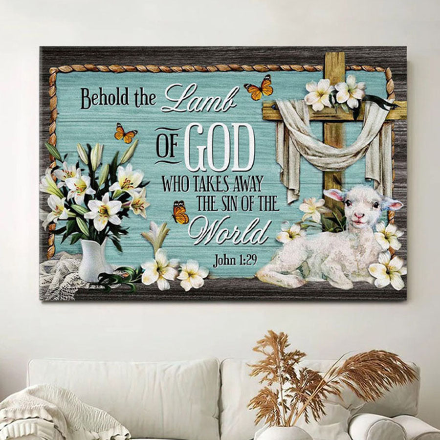 Christian Wall Art John 129 Behold The Lamb Of God Bible Verse Canvas Print - Christian Wall Decor